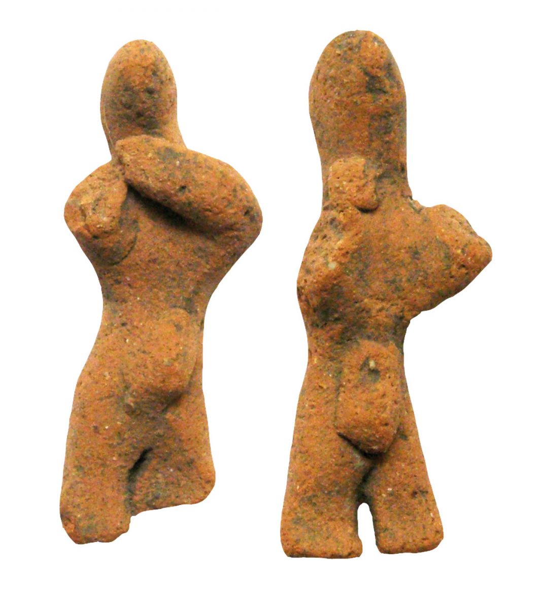 Μικροσκοπικά ειδώλια ανθρώπινων μορφών που φορούν ζώμα και χειρονομούν με τον ίδιο τρόπο: α) ΑΜΡ 16671, β) ΑΜΡ 16672.