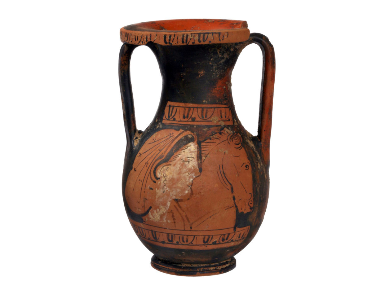 Αττική ερυθρόμορφη πελίκη που ήρθε στο φως στη διάρκεια των ανασκαφών στην Κοιλάδα των Τεμπών.