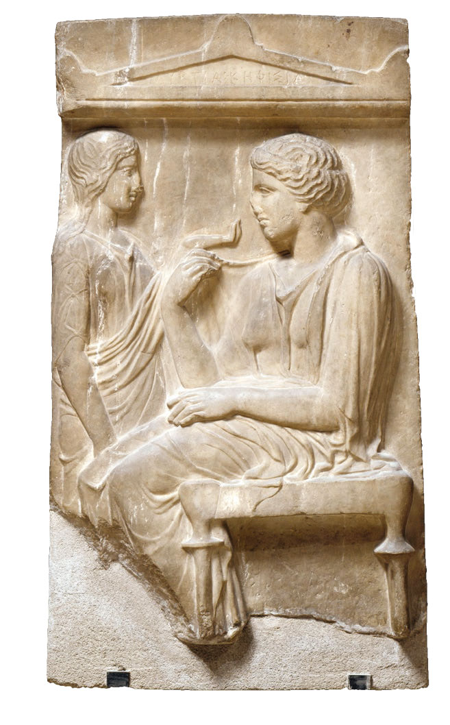 Η στήλη της Μυρτιάς. Περ. 400 π.Χ. Αρ. ΜΑ 806. Μουσείο Καλβέ.