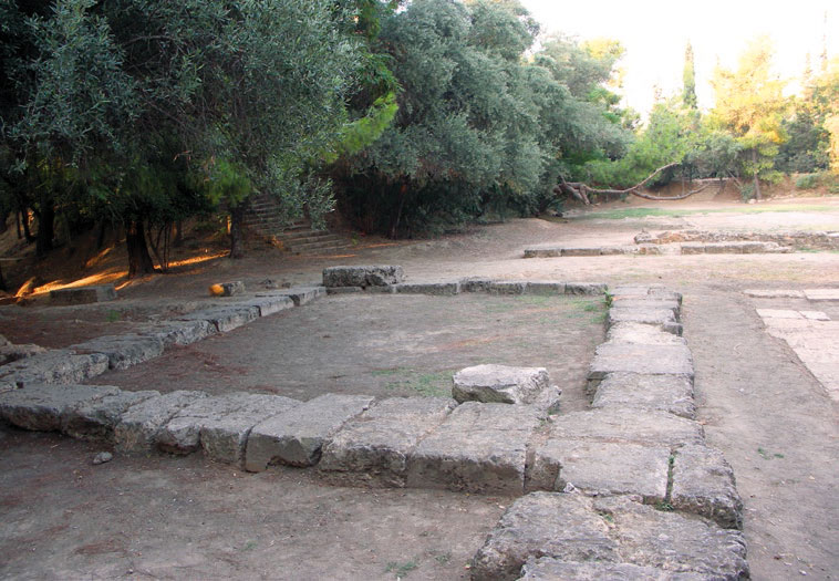 Μονή Ελληνικών Θουρίας. Ιδιοκτησία Φιλιόπουλου. Άποψη από δυτικά του χώρου όπου βρίσκεται η βάση του ελαιοπιεστηρίου.