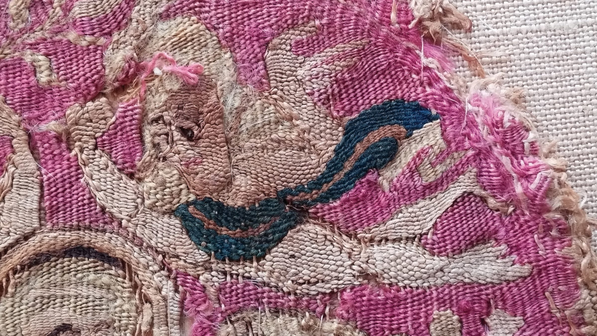 Λινό, ανισομερές σημείο με βαφή κοχενίλλης (ΠΛΙ, αρ. ευρ. 2000.05.21).