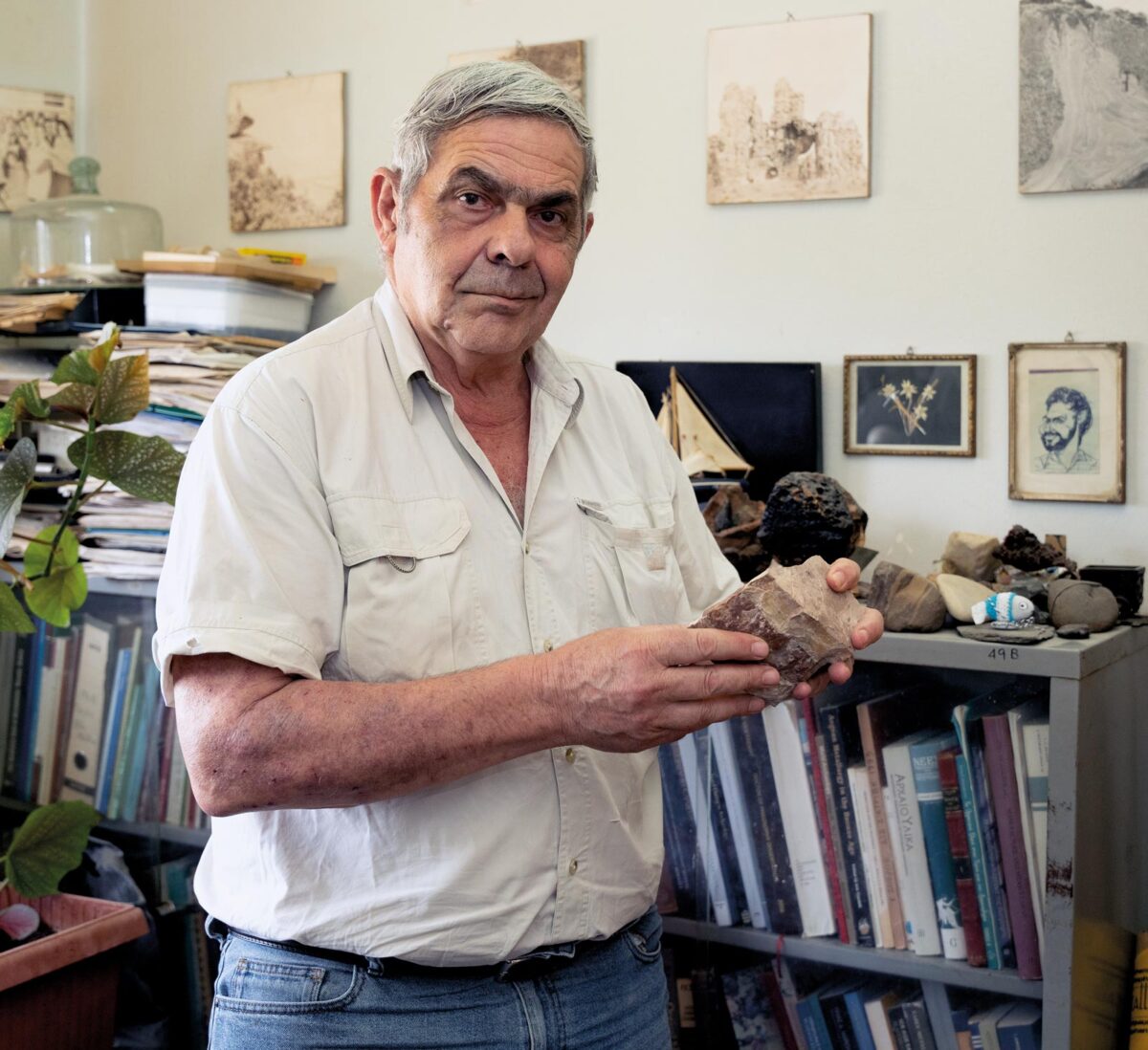 Ο Ανδρέας Ντάρλας στο εργαστήριο της Εφορείας Παλαιοανθρωπολογίας–Σπηλαιολογίας, μελετώντας τα λίθινα εργαλεία από μια παλαιολιθική έρευνα.