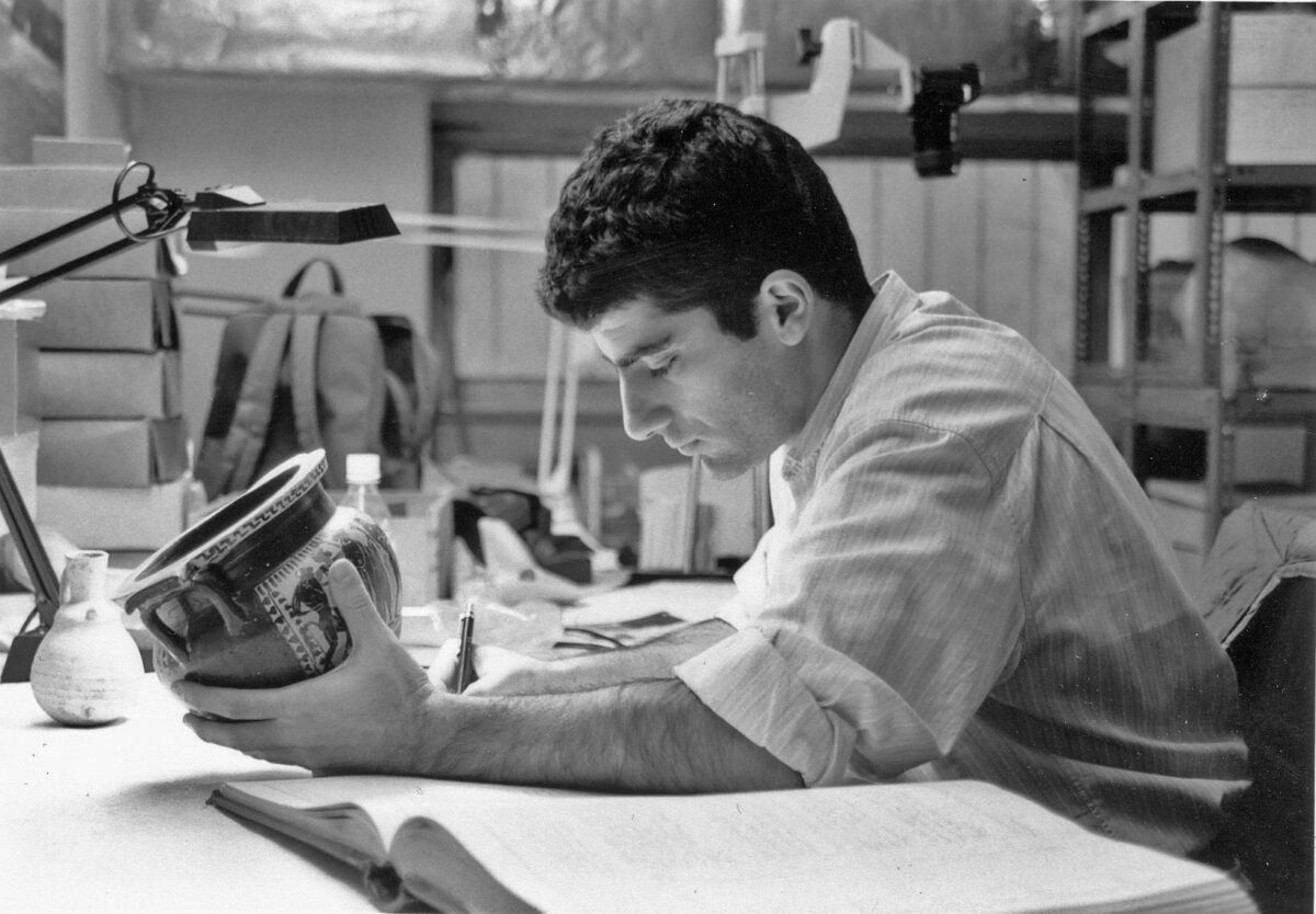 Ο Φώτης Γεωργιάδης ενώ καταγράφει ευρήματα στην Αποθήκη 8 του Αρχαιολογικού Μουσείου Θεσσαλονίκης τον Νοέμβριο του 1994.