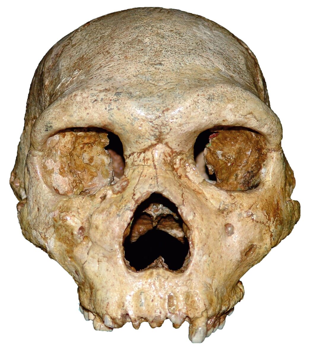 Εμπρόσθια όψη του κρανίου του Ανθρώπου των Πετραλώνων (παραχώρηση του εργαστηρίου Γεωλογίας και Παλαιοντολογίας του ΑΠΘ).