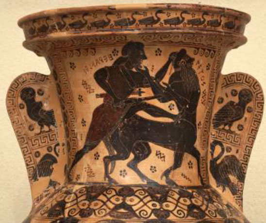 Με αφετηρία το περίφημο αγγείο στο λαιμό του οποίου παριστάνεται ο Ηρακλής να παλεύει με τον κένταυρο Νέσσο, οι αρχαίοι μύθοι μάς δίνουν τις δικές τους απαντήσεις. Μισοί άλογα, μισοί άνθρωποι, τερατόμορφοι κι ορμητικοί, βίαιοι και ασυγκράτητοι σαν την ίδια τη φύση, επιθετικοί και ζηλιάρηδες, αλλά και σοφοί, οι Κένταυροι, ανάμεσά τους ο Ευρυτίων, ο Νέσσος και ο Χείρων, ήταν από τα αγαπημένα πλάσματα της φαντασίας των αρχαίων Eλλήνων.
