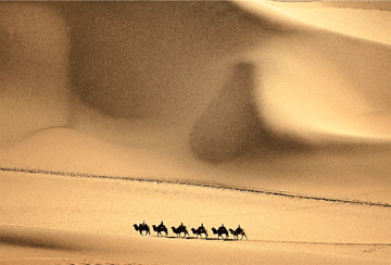 Το πέρασμα των καραβανιών από την έρημο αυτή ανά τους αιώνες άφησε πάμπολλα σημάδια πίσω του. Οι πρώτοι δυτικοί μελετητές που έφθασαν στην περιοχή το 1900- ο Σουηδός γεωγράφος Sven Ηedin και ο Ούγγρος Αurel Stein- βρήκαν πολλά από αυτά, όπως και 2.000 χειρόγραφα που εξιστορούσαν τα δρομολόγια του δρόμου του μεταξιού τους προηγούμενους αιώνες. Ακολουθώντας τον δρόμο στις περιοχές της Κίνας, έβρισκαν παντού επιρροές από την τέχνη των Ελλήνων: Γεωμετρικά σχέδια στα υφαντά και στα κεραμικά, αγάλματα φτερωτών αλόγων, απεικονίσεις του Βούδα με φτερά αγγέλου… αλλά και ζωγραφιές με έλληνες στρατιώτες και Κενταύρους. Πολλοί σύγχρονοι αρχαιολόγοι επιμένουν ότι και ο πήλινος στρατός, που συνόδευσε το 210 π.Χ. τον αυτοκράτορα Κιν στον τάφο, είχε πηγή έμπνευσης τα αγάλματα των Ελλήνων!