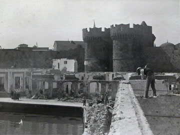 Η παράδοση της πόλης της Ρόδου στην ελληνική Διοίκηση συνοδεύθηκε με κάποιες προτάσεις αποκατάστασης των πληγέντων από τους βομβαρδισμούς του ’44 ιπποτικών μνημείων, όπως επίσης και ανοικοδόμησης με νέες κατασκευές του διαταραχθέντος αστικού της ιστού. Ο χαρακτήρας της πόλης για τους ιταλούς όφειλε να είναι ένας και μοναδικός, ο ιπποτικός.