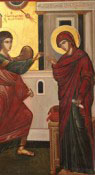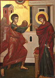 Ο Κώστας Γλιάτας μοιάζει να επικεντρώνεται εικαστικά στην εικόνα της Βρεφοκρατούσας Παναγίας, αφού διαπιστώνουμε ότι την φιλοτεχνεί αρκετές φορές. Η νεανική και μελαγχολική ομορφιά της ελκύει αμέσως το μάτι του θεατή στην καρδιά της εικόνας, όπου ο μικρός Χριστός-Εμμανουήλ ένθρονος στην αγκαλιά της την ακουμπά τρυφερά στο χέρι αναζητώντας προστασία, ενώ αυτή φωλιάζει σκεπτικά το μάγουλό της στα πλούσια μαλλιά του. Σε άλλες συνθέσεις του, όπως ο Ευαγγελισμός (εικ. 7), η Υπαπαντή, η Μεταμόρφωση, ο ζωγράφος μοιάζει να απελευθερώνει τις μορφές από το κλασικό τους βάρος δίνοντας την αίσθηση ότι αιωρούνται σε μια άυλη υπόσταση. Είναι φανερό ότι στη σκηνή του Ευαγγελισμού (εικ. 7), συνεχίζει να εμπνέεται τεχνοτροπικά από αντίστοιχες σκηνές του Φώτη Κόντογλου στο ναό του Αγίου Γεωργίου Κυψέλης και στο παρεκκλήσιο της Αγίας Λουκίας, της οικογένειας Ζαΐμη στο Ρίο της Πάτρας, που αποτελεί και την πρώτη δουλειά του δασκάλου του σε τοιχογραφία. Ενδιαφέρον παρουσιάζει η λεπτομέρεια με την Παναγία να προβάλλει την παλάμη του χεριού της μέσα από το μαφόριο, που θεωρείται παλαιολόγειο στοιχείο και υιοθετείται από το ζωγράφο.