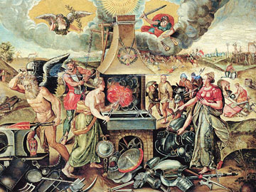 Η συνέχεια της μεταλλοτεχνίας και της συνεπαγόμενης στρατιωτικής κυριαρχίας μάς είναι γνωστή: Οι Ευρωπαίοι έπαψαν να αναζητούν «μαγικά σπαθιά» στα ηφαίστεια του Ηφαίστου, όταν κατάφεραν κι αυτοί να φτιάξουν στο Τολέδο χυτήρια που έφταναν στην πολυπόθητη θερμοκρασία των 1.200 βαθμών Κελσίου, τη θερμοκρασία δηλαδή όπου στεριώνει το κράμα του ατσαλιού. Μοναδικό απομεινάρι της αναζήτησης άθραυστων σπαθιών, σαν το Εξκάλιμπερ του Αρθούρου, έμειναν τα ισλανδικά έπη: Από την ανάλυσή τους εικάζεται ότι οι φοβεροί Έρουλοι, που ξεκίνησαν από τον Εύξεινο Πόντο και κατέστρεψαν την Αθήνα και τον Παρθενώνα, κατέληξαν στα ηφαίστεια της Ισλανδίας! Ίσως, αν και αυτή η ιστορία είναι αληθινή, να εξηγείται και γιατί απ΄ όλους τους ναούς της Αθήνας ο μόνος τον οποίο δεν έκαψαν ήταν ο ναός του Ηφαίστου, ο γνωστός μας τώρα ως ναός του Θησείου… Ιδιαίτερα ενδιαφέρον είναι και το πώς η όλη αιματηρή διαμόρφωση της ιστορίας των ανθρώπων «διά πυρός και σιδήρου» του Ηφαίστου έφτασε στο σημείο έναρξης της αντιστροφής της: Λίγο μετά τον Β΄ Παγκόσμιο Πόλεμο ο Γάλλος Ζαν Μονέ συνειδητοποίησε ότι ο μόνος τρόπος να πάψουν οι Ευρωπαίοι να πολεμούν μεταξύ τους ήταν να πάψουν να έχουν εθνικό έλεγχο στην παραγωγή χάλυβα, άρα στα δύο βασικά συστατικά του: τον σίδηρο και τον άνθρακα. Την ιδέα του ενστερνίστηκαν οι πολιτικοί Γαλλίας, Γερμανίας, Ιταλίας, Βελγίου, Λουξεμβούργου και Κάτω Χωρών και, το 1951, ίδρυσαν την Ευρωπαϊκή Κοινότητα Άνθρακα και Χάλυβα. Ήταν η αρχή της τωρινής Ευρωπαϊκής Ένωσης.