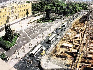 «Τελειώνει η Κοτζιά το 1988 και αμέσως μετά αρχίζει η προετοιμασία για τα έργα του μετρό. Πρώτος σταθμός μας, το 1992, στην οδό Κοραή. Παίρνουμε λεπτά εργαλεία, γιατί περιμένουμε να βρούμε νεκροταφείο. Παλιότερα είχαν βρεθεί στην οδό Σταδίου, στην Κλαυθμώνος, ταφές. Η ανασκαφή, όμως, μας εκπλήσσει αρνητικά. Πέφτουμε σε βράχο με δεξαμενές. Στην Κοραή ήταν η κορυφή ενός λόφου. Η ανασκαφή τελειώνει σε 15 μέρες. Οι άνθρωποι του μετρό τα χάνουν. “Σκάψτε κι άλλο”, μας λένε, γιατί είχαν υπολογίσει ότι η έρευνά μας θα διαρκούσε έξι μήνες. Μαζεύουμε τα εργαλεία μας και πάμε στο Σύνταγμα, στη λεωφόρο Αμαλίας. Ένας δρόμος γεμάτος εκπλήξεις. Τα αρχαία αρχίζουν να αποκαλύπτονται μόλις βγαίνει η άσφαλτος. Όλη η ιστορία της πόλης περνάει από εκεί. Έχουμε ευρήματα από την υπομυκηναϊκή εποχή, δηλαδή τον 11ο αιώνα π.Χ., μέχρι την Οθωνική (19ος). Την αρχαιότερη μαρτυρία συνιστούν δύο υπομυκηναϊκοί τάφοι λαξευμένοι στον βράχο. με αγγεία και χάλκινα κοσμήματα. Ο ένας ήταν πάνω στην Αμαλίας και ο άλλος στην είσοδο του ξενοδοχείου “Μεγάλη Βρετανία”. Αργότερα, βρήκαμε κι άλλον ένα στη Βουλή».
