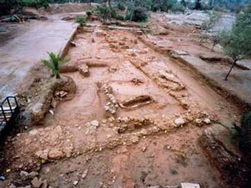 Στη δεύτερη θέση που ανασκάπτεται, έχουν βρεθεί οι τρεις πλευρές ενός μεγάλου ορθογώνιου περίβολου της Προϊστορικής εποχής (μέσα 3ης π.Χ. χιλιετίας) εντός του οποίου υπάρχουν κυκλικοί λάκκοι και λαξεύματα που παραπέμπουν σε εργαστηριακή χρήση επεξεργασίας μεταλλεύματος όπως προκύπτει από τις σκωρίες που έχουν εντοπισθεί. Πολύ αργότερα στην Υστερορωμαϊκή εποχή ιδρύθηκε μέσα και έξω από τον περίβολο ένα νεκροταφείο από το οποίο έχουν ήδη ανασκαφεί 42 τάφοι. Θεωρείται ότι ανήκει σε κάποιον οικισμό που δεν έχει ακόμη εντοπισθεί και με τον οποίο σχετίζεται και η βασιλική.