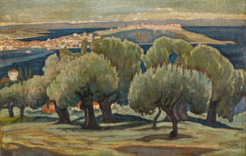 Τα τέσσερα εκ. λίρες αναμένεται να ξεπεράσει η δημοπρασία ελληνικών έργων του οίκου «Σόθμπις», που θα πραγματοποιηθεί τη Δευτέρα 9 Μαΐου, στο Λονδίνο. Μεταξύ των έργων που θα βγουν στο σφυρί είναι και σημαντικά δείγματα από καλλιτέχνες του 19ου και του 20ού αιώνα, όπως οι Κωνσταντίνος Βολανάκης, Κωνσταντίνος Μαλέας και Νίκος Χατζηκυριάκος-Γκίκας, Νικόλαος Γύζης, Γιάννης Πρέκας, Θεόφιλος, Γιάννης Σπυρόπουλος, Αλέκος Κοντόπουλος, Νίκος Εγγονόπουλος και Αλέκος Φασιανός. Στη δημοπρασία θα πρωταγωνιστήσει το έργο του Κωνσταντίνου Βολανάκη (1837-1907) «Κομψές Φιγούρες στην Ακτή», το οποίο εκτιμάται ότι θα πιάσει μεταξύ 345.000-575.000 ευρώ. Ο Βολανάκης αποτελεί έναν από τους πλέον σημαντικούς καλλιτέχνες τόσο για το 19ο αιώνα όσο και για το «είδος» της θαλασσογραφίας, αλλά κυρίως για τη θέση του ως κύριου μέλους της ελληνικής Σχολής του Μονάχου, του κινήματος του ακαδημαϊκού ρεαλισμού που σχεδόν έρχεται σε αντίθεση με τη ζεστασιά και την αμεσότητα των θαλασσινών τοπίων του. Στη δημοπρασία το ενδιαφέρον αναμένεται να συγκεντρώσουν και το έργο του Κωνσταντίνου Μαλέα (1879-1928) «Τα Ελαιόδεντρα, Μυτιλήνη» (φωτό) -η τιμή του οποίου εκτιμάται στις 92.500-139.000 ευρώ- και ο πίνακάς του «Η Ακτή, Αττική» (η τιμή του εκτιμάται στις 81.000-116.000 ευρώ). Οσο για τον πίνακα του Νίκου Χατζηκυριάκου-Γκίκα «Λουλούδια» (1937), η τιμή εκτίμησης κυμαίνεται στις 116.000-173.000 ευρώ.