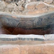Το δάπεδο ήταν διακοσμημένο με γραμμικά σχέδια από κίτρινο, κόκκινο, λευκό, μπλε και μαύρο. Μπροστά από τον θρόνο, υπήρχε μια φυσιοκρατική παράσταση χταποδιού. Η εστία έφερε παραστάσεις με σπειροειδή θέματα.