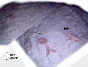 Δεδομένου τα κείμενα απουσιάζουν από τους τοίχους του μνημείου- όπως και σε όλες τις πυραμίδες της 4ης Δυναστείας – , ότι δεν έχει δοθεί επαρκής εξήγηση για τον χαρακτήρα των τομών που ξεκινούν από τους δύο θαλάμους του καθώς και ότι οι δύο τομές του Θαλάμου της Βασίλισσας καταλήγουν σε αδιέξοδο στο εσωτερικό του όγκου της πυραμίδας, τα σημεία αποτέλεσαν από την αρχή αντικείμενο έρευνας των επιστημόνων αλλά και των απανταχού «πυραμιδολόγων». Την αρχή έκανε ο Luca Miatello, ανεξάρτητος επιστήμονας ειδικός στα αρχαία αιγυπτιακά μαθηματικά, ο οποίος βλέπει στα σύμβολα αριθμούς σε ιερατική γραφή. Από δεξιά προς τα αριστερά λοιπόν, ο δρ. Miatello διαβάζει τα σύμβολα 100, 20 και 1, που αποδίδουν τον αριθμό 121. Στον αριθμό αυτό βλέπει την απόδοση του μήκους της τομής που θα έφτανε τους 121 βασιλικούς πήχεις (αγγλ. cubits, αιγ. “meh”), ενώ στηρίζει την άποψη αυτή με βάση παλαιότερη διαπίστωσή του ότι στα σχέδια της Μεγάλης Πυραμίδας απαντούν πολλαπλάσια του 7, του 9 και του 11 σε πήχεις. Επιφανείς ερευνητές, μεταξύ των οποίων ο James P. Allen (Πανεπιστήμιο Brown), επιδοκιμάζουν την παρατήρηση του Miatello ενώ και ο Zahi Hawass υποστηρίζει ότι τα σύμβολα είναι είτε αριθμοί είτε χαρακτηριστικά «τεκτονικά σημεία», τα οποία οι χτίστες χρησιμοποιούσαν κατά την κατασκευή των μνημείων για να επισημαίνουν τρόπο, σημείο ή σειρά τοποθέτησης δόμων. Εξυπηρετούσαν δηλαδή πρακτικούς σκοπούς και δεν είχαν καμία μεταφυσική χροιά.