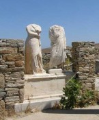 Για την κατασκευή του χρησιμοποιήθηκε τοπικό μάρμαρο Θάσου, που είναι πολύ καλής ποιότητας. Μάλιστα, οι Φοίνικες το είχαν ανακαλύψει από αρχαιοτάτων χρόνων και είχαν εκτεταμένες λατομικές εγκαταστάσεις στο νησί. Λόγω της κρυσταλλικής του δομής και της μικρής περιεκτικότητας προσμείξεων επιδεικνύει ικανοποιητική αντοχή στους κύκλους ύγρανσης/ξήρανσης, καθώς και στην άσκηση οσμωτικών πιέσεων από την κρυστάλλωση αλάτων, όπως είπε ο κ. Μίνως παρουσιάζοντας την εργασία του Α. Φτίκου. Ωστόσο, αυτό δεν σημαίνει πως δεν υπάρχουν προβλήματα. Το σημαντικότερο είναι οι βιολογικές επικαθίσεις που παρατηρούνται σε πάνω από τη μισή επιφάνειά του. Η γειτνίαση με τη θάλασσα, εκτός από τα άλατα, ευνοεί και αυτές λόγω της αυξημένης υγρασίας. Επίσης, τα περιττώματα των πουλιών είναι επιβλαβή.