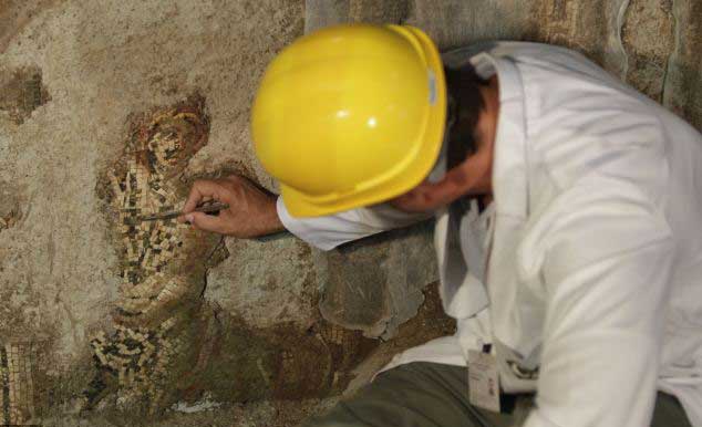 Εργασίες στερέωσης του Χρυσού Παλατιού του Νέρωνα στη Ρώμη έφεραν στο φως επιτοίχιο ψηφιδωτό του 1ου αι. μ.Χ. με παράσταση του Απόλλωνα, το οποίο σώζεται σε καλή κατάσταση. Ο θεός απεικονίζεται γυμνός, με ένα μανδύα να καλύπτει τον αριστερό του ώμο.