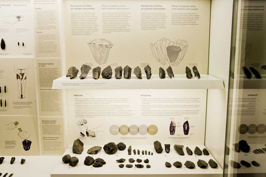 Οι τεχνικές που ανέπτυξαν για την επεξεργασία του ήταν «τεχνολογικό αριστούργημα για την εποχή», μας εξηγεί η καθηγήτρια Προϊστορικής Αρχαιολογίας του Πανεπιστημίου Θεσσαλίας, Αντίκλεια Μουνδρέα-Αγραφιώτη. «Στόχευαν κυρίως στην κατασκευή λεπίδων, δηλαδή μακρόστενων κοφτερών μαχαιριών». Ανακάλυψαν αργότερα την πίεση, «που είναι η πιο εξελιγμένη τεχνική κατασκευής τους, και η οποία γενικεύεται στο Αιγαίο κυρίως μετά την 3η χιλιετία π.Χ.» και κατασκεύαζαν έπειτα αιχμές βελών, δοράτων, αλλά και πριονάκια, τρυπάνια και ξέστρα.