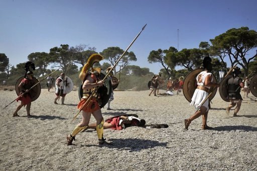 Πενήντα άνδρες οπλισμένοι με θώρακες, ασπίδες και άλλα εξαρτήματα που αντιπροσώπευαν τον βαρύ οπλισμό μιας άλλης εποχής πλημμύρισαν την παράκτια πεδιάδα του Μαραθώνα το περασμένο Σάββατο. Σκοπός τους; Να αναπαραστήσουν τη μάχη του Μαραθώνα!