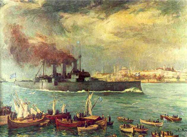 «Οι θαλάσσιες επιχειρήσεις των Βαλκανικών Πολέμων είναι και οι πρώτες ναυτικές πολεμικές σκηνές που απεικονίζονται στην ελληνική ζωγραφική με τα νέου τύπου καταδρομικά: ατμοκίνητα, όχι ιστιοφόρα, με μεταλλική θωράκιση και βαρύ οπλισμό νέας τεχνολογίας», σύμφωνα με τον Μανόλη Βλάχο, καθηγητή του Πανεπιστημίου Αθηνών και ιστορικό Τέχνης.