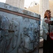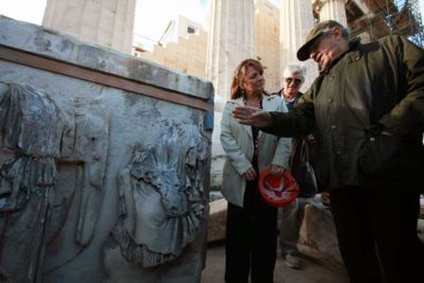 Λίγο πριν τις 8.30 το πρωί, η 32η μαρμάρινη μετόπη του Παρθενώνα, αφού αιωρήθηκε λίγο στον αέρα, κατέβηκε με πολλή προσοχή από το εξειδικευμένο προσωπικό της Ακρόπολης, ακουμπώντας κάτω στη γη για πρώτη φορά μετά από 2.500 χρόνια.