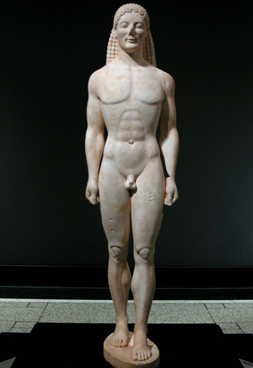 Ειδικά για τα έργα από μάρμαρο, αλλά και γενικότερα από οποιονδήποτε τύπο λίθου, δεν υπάρχει μέχρι σήμερα αξιόπιστη φυσικοχημική τεχνική ελέγχου αυθεντικότητας [σημ. 4]. Αυτό συμβαίνει γιατί η ηλικία ενός μαρμάρινου έργου είναι η ηλικία της επιφάνειάς του, του εξωτερικού στρώματος διάβρωσης που ονομάζεται «πατίνα» (όρος κλεμμένος από τη διάβρωση μεταλλικών αντικειμένων). Η πατίνα των λίθων όμως δεν μπορεί γενικά να χρονολογηθεί με 14C, θερμοφωταύγεια ή κάποια άλλη φυσικοχημική τεχνική. Δεν υπάρχουν επίσης τυπικά «είδη αρχαίας πατίνας» με τα οποία μπορούμε να συγκρίνουμε το άγνωστο δείγμα αφού κάθε εξαλλοιωμένη επιφάνεια λίθου είναι διαφορετική ανάλογα με τον τύπο του λίθου, το μέγεθος των κόκκων του, το πορώδες του, τις συνθήκες του περιβάλλοντος (υγρασία, θερμοκρασία, σύσταση υπόγειων νερών κ.λπ.), παλαιότερες επεμβάσεις συντήρησης καθώς και το χρόνο ταφής του. Συνεπώς, η διερεύνηση της αυθεντικότητας είναι μια «προσέγγιση ντετέκτιβ». Ο ερευνητής συλλέγει δεδομένα μέσω εφαρμογής πολλών φυσικοχημικών τεχνικών και τα συγκρίνει με εκείνα που αναμένονται θεωρητικά σύμφωνα με την ηλικία, την τεχνοτροπία, την προέλευση και το περιβάλλον διατήρησης του αντικειμένου. Οποιαδήποτε «παραφωνία» θεωρείται κλειδί για την αυθεντικότητα του έργου, αλλά η απουσία «παραφωνίας» δεν σημαίνει κατ’ ανάγκη και κίβδηλο έργο, με αποτέλεσμα σε πολλές περιπτώσεις να μην μπορεί να δοθεί σίγουρη απάντηση. Η πιο διάσημη περίπτωση αμφίβολου έργου είναι σήμερα ο Κούρος του μουσείου Getty (εικ. 3). Αγοράστηκε το 1984 για 7 εκατομμύρια δολάρια και παρ’ όλες τις πάσης φύσεως διεξοδικές μελέτες που έγιναν δεν έχει δοθεί οριστική απάντηση για την αυθεντικότητά του.