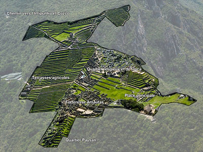 Ο Guzman λέει πως το αρχικό περίγραμμα της πόλης είχε το σχήμα ενός πουλιού, που έμοιαζε να πετά προς το λόφο Una Huayna Picchu. Τα συμπεράσματά του βασίζονται στη μελέτη της πολεοδομικής χρήσης και του προσανατολισμού του μνημείου παγκόσμιας κληρονομιάς.
