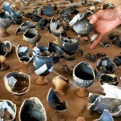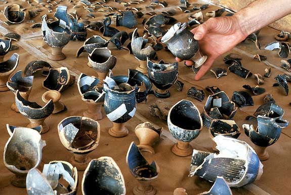 Τα τμήματα βρέθηκαν πλάι σε σταλαγμίτη φαλλικού σχήματος ανάμεσα σε χιλιάδες θραύσματα αρχαίας ελληνιστικής κεραμικής, συγκεκριμένα αγγείων πόσης.