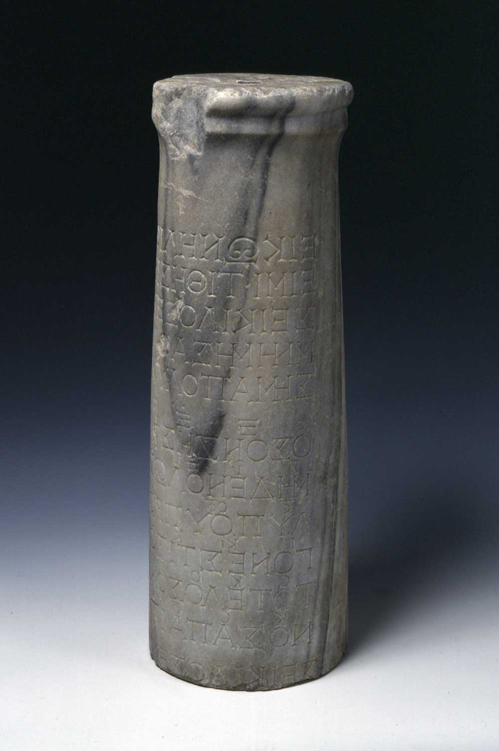 Αποκαλύφθηκε το 1883 στο Αϊδίνιο (αρχαίες Τράλλεις της Μικράς Ασίας). Εκτέθηκε σε μουσείο της Σμύρνης, έως το 1922, οπότε και χάθηκε. Σύμφωνα με τον Διευθυντή της τοπικής αρχής Πολιτισμού και Τουρισμού Nuri Aktakka, η στήλη μεταφέρθηκε παράνομα στο εξωτερικό. Σήμερα, βρίσκεται στο Εθνικό Μουσείο της Δανίας, στην Κοπεγχάγη. Η Τουρκία αξιώνει τώρα την επιστροφή της στήλης με τα περίφημα επικούρεια μηνύματα στη γενέτειρά της.