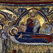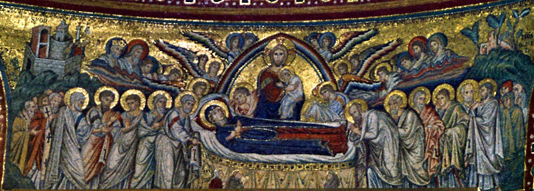 Στη βυζαντινή αρχιτεκτονική, όπου ο ναός κατ’ εικόνα του κόσμου αποτελεί μικρογραφία της οικουμένης, ο συμβολισμός επεκτείνεται στην εικονογραφία με σαφή αλληλουχία και αυστηρή επιλογή των θεμάτων. Ο θόλος, που όπως αναφέρθηκε αντιπροσωπεύει το στερέωμα, φιλοξενεί στην κορυφή του την εικόνα του Χριστού Παντοκράτορα ο οποίος εποπτεύει τα εγκόσμια. Στην κόγχη του ιερού, το δεύτερο κατά σειρά υψηλότερο σημείο στο ναό, απεικονίζεται η Θεομήτωρ, ως Πλατυτέρα των ουρανών, πλαισιωμένη από σκηνές της ζωής της και της ζωής του Ιησού. Στις υπόλοιπες επιφάνειες, κατεβαίνοντας προς το εκκλησίασμα, ακολουθείται η ουράνια ιεραρχία με τους προφήτες, τους απόστολους και τους αγίους οι οποίοι αποτελούν τη γέφυρα που συνδέει τα εγκόσμια με τη βασιλεία των ουρανών. Τέλος το τέμπλο, ολοκληρώνοντας την αναπαράσταση της οικουμένης στο εσωτερικό του ναού, διαχωρίζει τον υλικό κόσμο από τον πνευματικό δηλώνοντας με σαφήνεια, όπως και όλος ο αρχιτεκτονικός και εικονογραφικός συμβολισμός της ορθόδοξης ναοδομίας, την Θεία διάταξη και τη θέση που καταλαμβάνει ο πιστός σε αυτή.