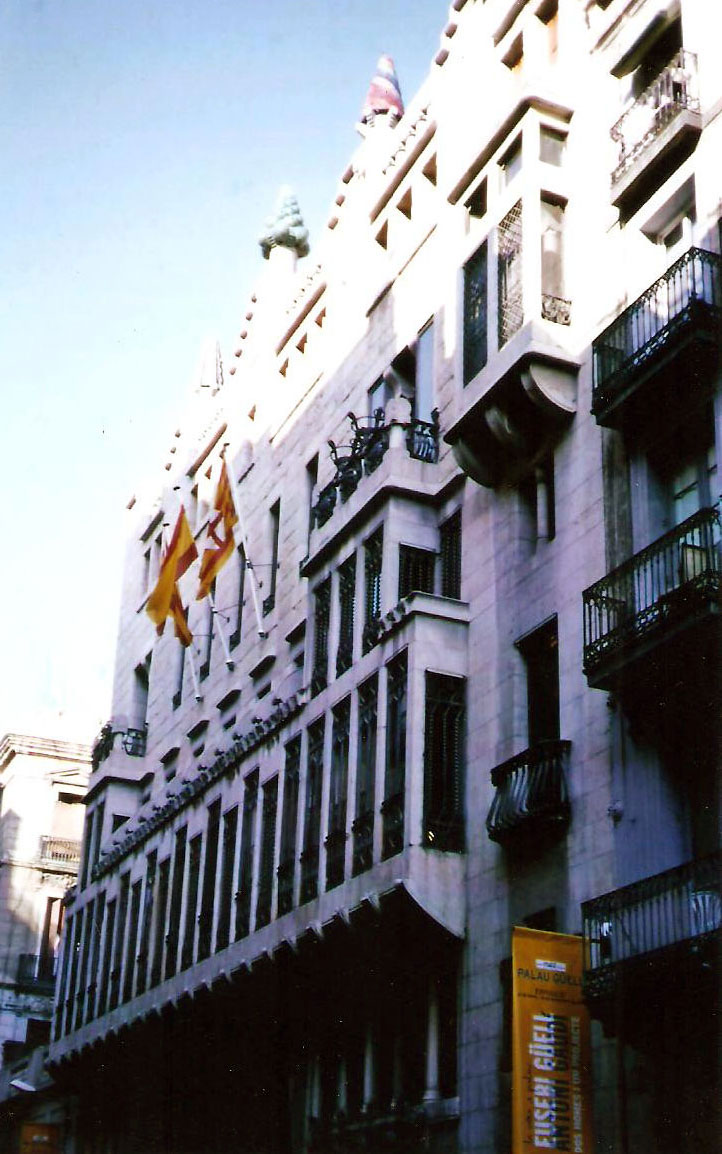Επιστρέφοντας στην αρχιτεκτονική του Γκαουντί παρατηρούμε ότι ο Eusebì Güell οικοδομεί ένα μέγαρο και ταυτοχρόνως γίνεται κάτοχος των συμβόλων και συνεπώς της ίδιας της πατρίδας του. Η ασπίδα, η σημαία της Καταλονίας, ανάμεσα στις δύο εισόδους και η εξωτερική απόληξη του τρούλου, ως το ιερό όρος της Καταλονίας Montserrat, είναι από τα χαρακτηριστικότερα δείγματα αυτής της πρόθεσης.