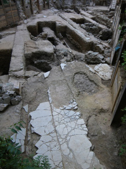 Τμήματα τοίχων και σπαράγματα κονιαμάτων που έφεραν αυλακώσεις και κυματισμούς με ίχνη χρωμάτων φαίνεται πως προέρχονταν από ρωμαϊκές επαύλεις, εντυπωσιακά κατάλοιπα των οποίων (ψηφιδωτά δάπεδα και τοιχογραφίες) έχουν βρεθεί παλαιότερα στην περιοχή υπό τη νότια στοά του γαλεριανού ανακτόρου, καθώς και σε άλλο σημείο της οδού Π. Π. Γερμανού.