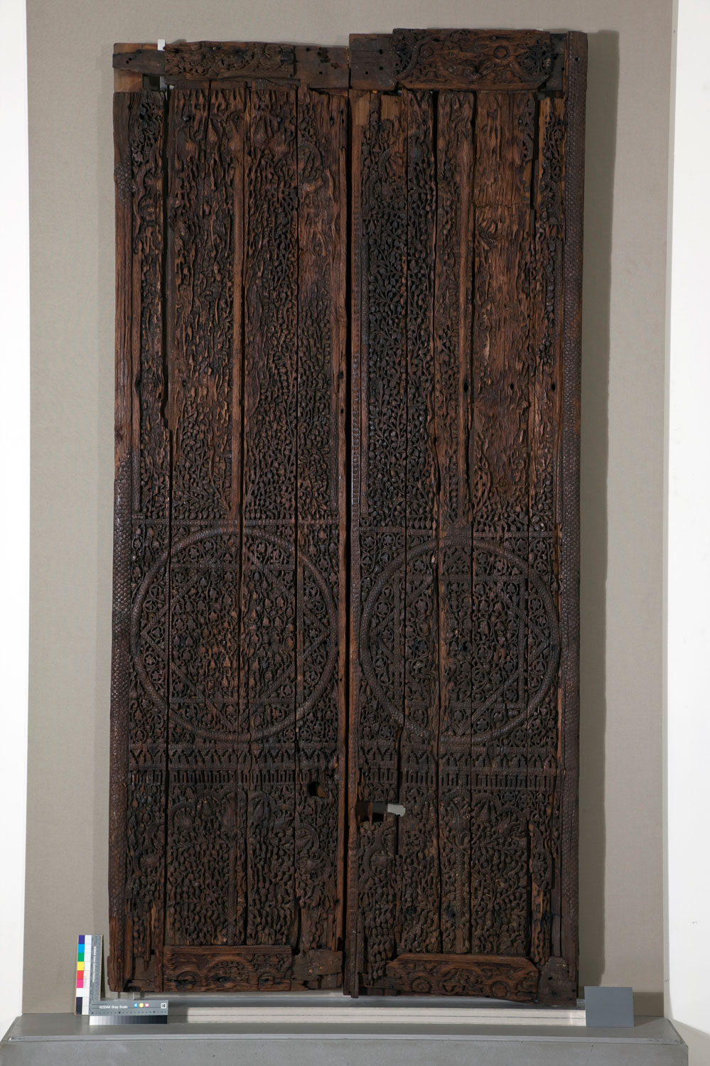 Οι επιμελήτριες του Μουσείου Μπενάκη Ροζάννα Μπαλλιάν, Μίνα Μωραΐτου και Αναστασία Δρανδάκη συνεργάστηκαν στενά με τους συντελεστές της έκθεσης στην επιλογή του υλικού αλλά και συμμετείχαν ενεργά στον κατάλογό της, υπογράφοντας εισαγωγικά κείμενα και λήμματα αντικειμένων. Δύο από αυτά είναι τα ελεφαντοστέινα πλακίδια που χρονολογούνται στον 8ο αιώνα και χρησίμευαν ως διακοσμητικά επίπλων. Η πλούσια φυτική διακόσμηση είναι χαρακτηριστική της Ομαγιαδικής εποχής, η οποία απαντά και στα καστρόσπιτα που έκτιζαν οι πρώτοι χαλίφηδες στις παρυφές της συριακής ερήμου.