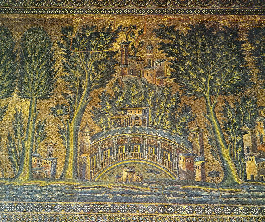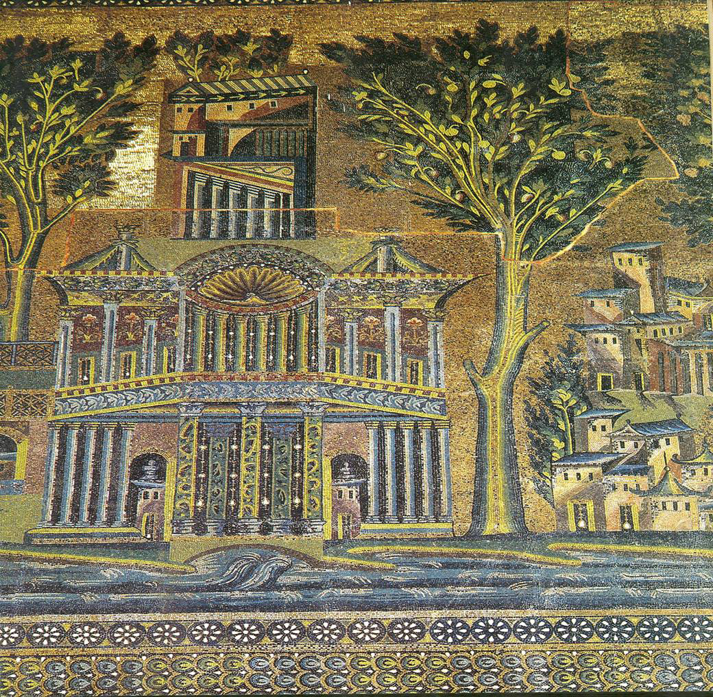 Η Μεσόγειος, ως θάλασσα πολιτισμού, ως θάλασσα που ενώνει τους λαούς, θα παραμείνει το κέντρο βάρους, και συγκεκριμένα το θέατρο των ανταλλαγών μέχρι την ανακάλυψη της Αμερικής (1492), έως τη στιγμή που η Δύση θα στρέψει το ενδιαφέρον της προς τα πλούτη της νέας ηπείρου. Ωστόσο, το υπόβαθρο της αρχαιότητας στη Μεσόγειο, της οποίας οι παράκτιες περιοχές έχουν διατηρήσει σημαντικά ίχνη, θα αφήσει βαθιά τη σφραγίδα του στους πολιτισμούς που αναπτύχθηκαν γύρω από αυτή. Και είναι αλήθεια ότι οι δεσμοί αυτοί εμφανίζονται με μεγαλύτερη ένταση στους χριστιανικούς πολιτισμούς. Οι λεγόμενες «αναγεννήσεις», από την Καρολίγγεια, γύρω στο 800 στη Δύση, την αναγέννηση των Μακεδόνων στο Βυζάντιο (10ος αιώνας), την κλασικίζουσα άνθηση της γοτθικής τέχνης, μέχρι την τελευταία των Παλαιολόγων ή τη γνωστή σε όλους Αναγέννηση της Ιταλίας του 15ου αιώνα, φανερώνουν την επιστροφή στα πρότυπα της αρχαιότητας. Το ίδιο παρατηρούμε, σε μικρότερο βέβαια βαθμό, στην τέχνη των πρώτων αιώνων του Ισλάμ. Ανεξάρτητα αν αυτή η τέχνη θα φέρει τη σφραγίδα της Ανατολής, αξίζει να θυμίσουμε εδώ τη σχέση της φρουριακής αρχιτεκτονικής των Ομεϊάδων με την αρχιτεκτονική των ρωμαϊκών στρατοπέδων, ή την τέχνη των υπέροχων ψηφιδωτών του Μεγάλου Τζαμιού της Δαμασκού, και τις ομοιότητές του με τα ελληνιστικά ή τα πρωτοβυζαντινά ψηφιδωτά (εικ. 4-7).