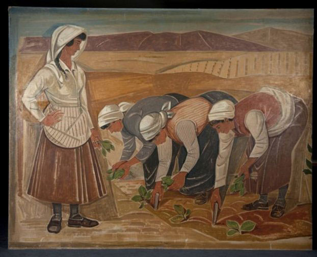 Πρόκειται για ένα αντιπροσωπευτικό δείγμα του υψηλής ποιότητας έργου του Τάσσου στο οποίο σημαντικό ρόλο παίζει το πολιτικό ενδιαφέρον του για τον κόσμο της αγροτικής εργασίας, έτσι ώστε η ιδιαίτερα ευαίσθητη κοινωνικά ματιά του ίδιου και της συντρόφου του να επηρεάζουν το ύφος της απόδοσης των σκληρά εργαζόμενων ανθρώπων. Και πέρα από αυτά όμως τα διδάγματα της βυζαντινής τέχνης, τα μοτίβα της αγγειογραφίας και της γλυπτικής της αρχαιότητας δίνουν το παρόν σε όλο το έργο.