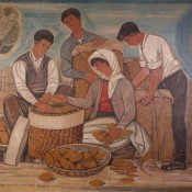 Με την υπογραφή του γνωστού χαράκτη και ζωγράφου Τάσσου Αλεβίζου (1914-1985) και της συντρόφου του Λουκίας Μαγγιώρου (1914-2008) το έργο είναι λάδι σε ύφασμα επικολλημένο σε ξύλο και αποτελείται από πέντε επιμέρους συνθέσεις ύψους 2 μέτρων. Συμπληρώνεται μάλιστα από προπαρασκευαστική μακέτα διαστάσεων 0,59×3,80 μ. Να σημειωθεί εξάλλου, ότι αυτή η ζωγραφική ζωφόρος εντοπίστηκε στο παλαιό κρατικό καπνεργοστάσιο της Θεσσαλονίκης για να μεταφερθεί στη συνέχεια στην Αθήνα.