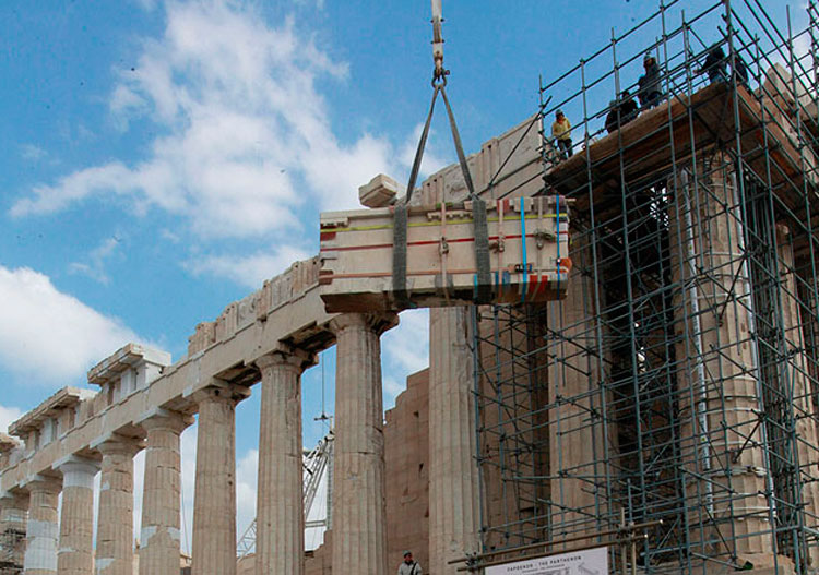 Η αναστήλωση της δυτικής πλευράς του Παρθενώνα, που έχει να δεχθεί επέμβαση για περισσότερο από έναν αιώνα και η αποκατάσταση της νότιας πτέρυγας των Προπυλαίων είναι τα μεγαλύτερα έργα που συντελούνται αυτή την περίοδο στην Ακρόπολη. Πρόκειται για δύο προγράμματα που προχωρούν κανονικά, παρά τα όποια προβλήματα αντιμετωπίζει γενικότερα η χώρα.