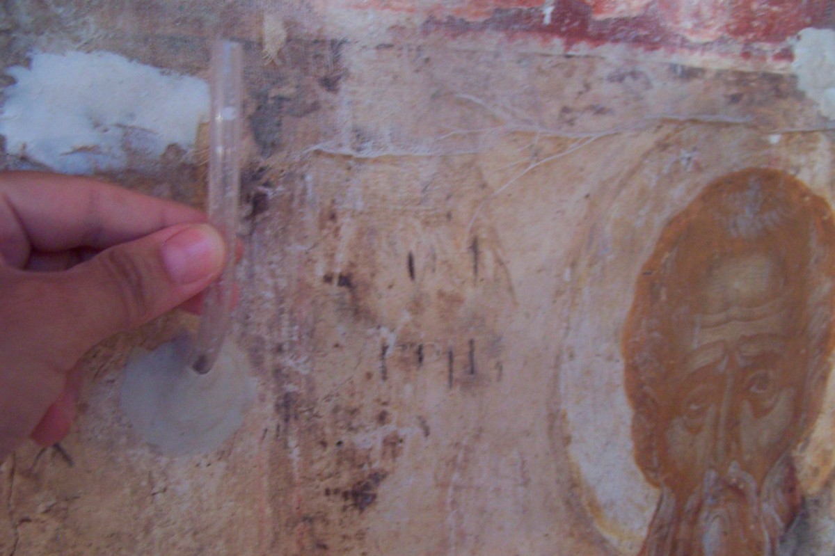 1. Τεκμηρίωση και έρευνα (στοιχειακή και ποσοτική) των υλικών και της μεθόδου κατασκευής, των ζωγραφικών στρωμάτων και των κονιαμάτων της τοιχογραφίας.