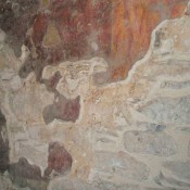 Οι προβληματισμοί όμως ποτέ δεν σταματούν: Στο στάδιο αυτό, συχνά οι κόκκοι του (προβληματικού) κονιάματος που βρίσκονται κάτω από το ζωγραφικό στρώμα υποχωρούν στην κίνηση του νερού εσωτερικά και καθιζάνουν λόγω βαρύτητας σε χαμηλότερα σημεία ή σβολιάζουν λόγω υγρασίας (σημ. 4).