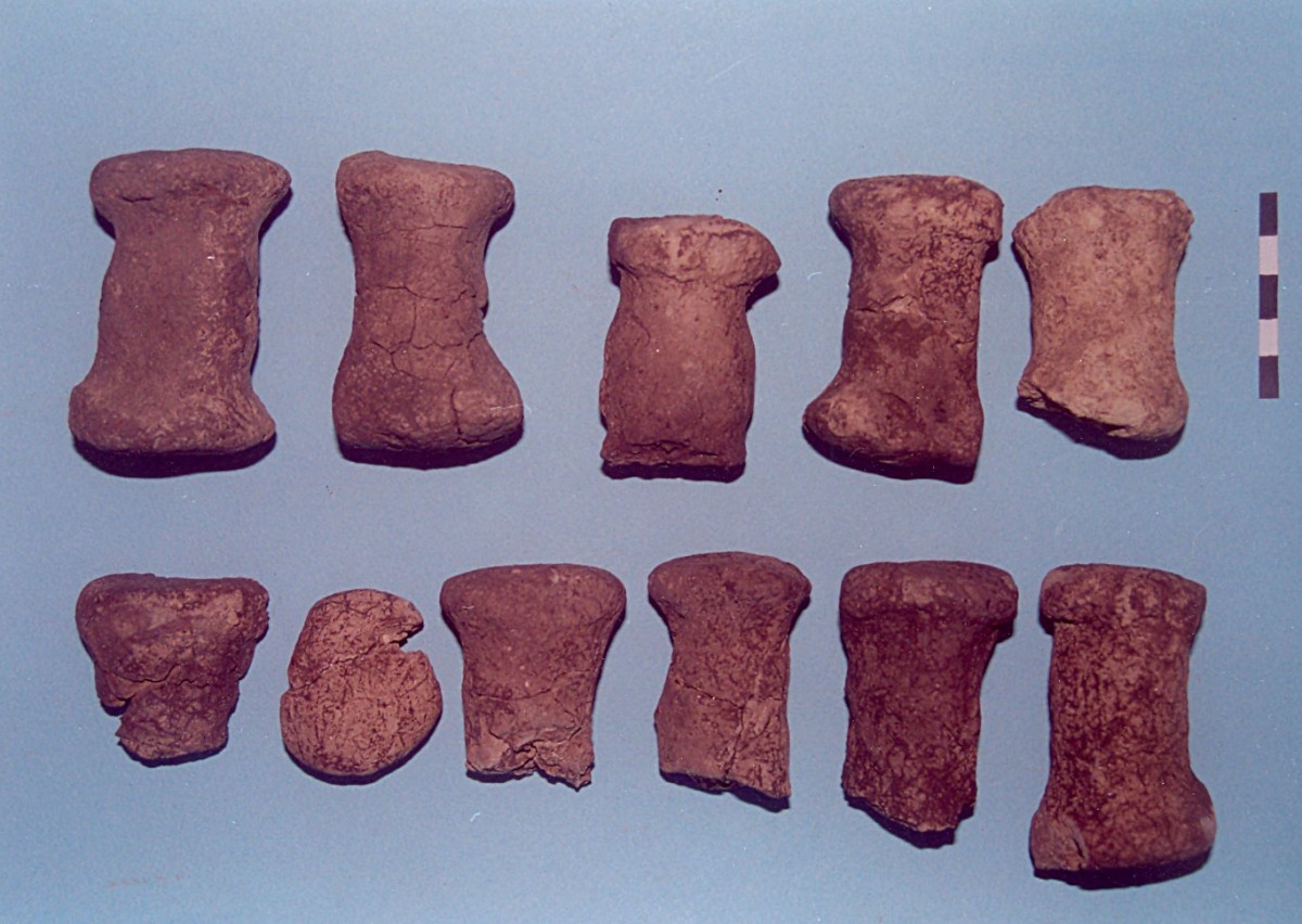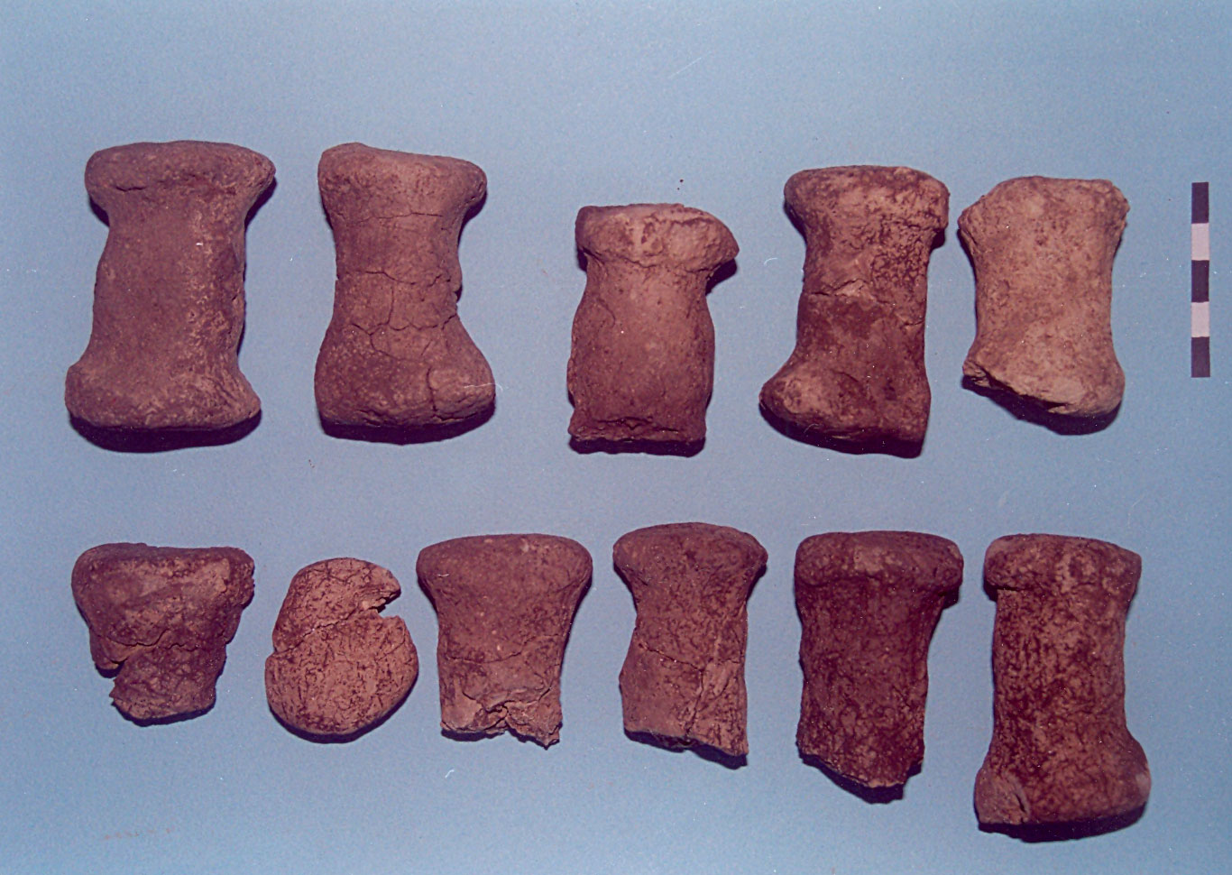 Από τα κινητά ευρήματα ξεχωρίζει μια ομάδα 10 μεγάλων πήλινων πηνίων, πιθανότατα υφαντικά βάρη, που εντοπίστηκαν πάνω σε ένα από τα δάπεδα και βεβαιώνουν την ανάπτυξη υφαντικής τέχνης στον οικισμό και στον συγκεκριμένο χώρο (εικ. 2).