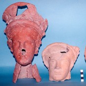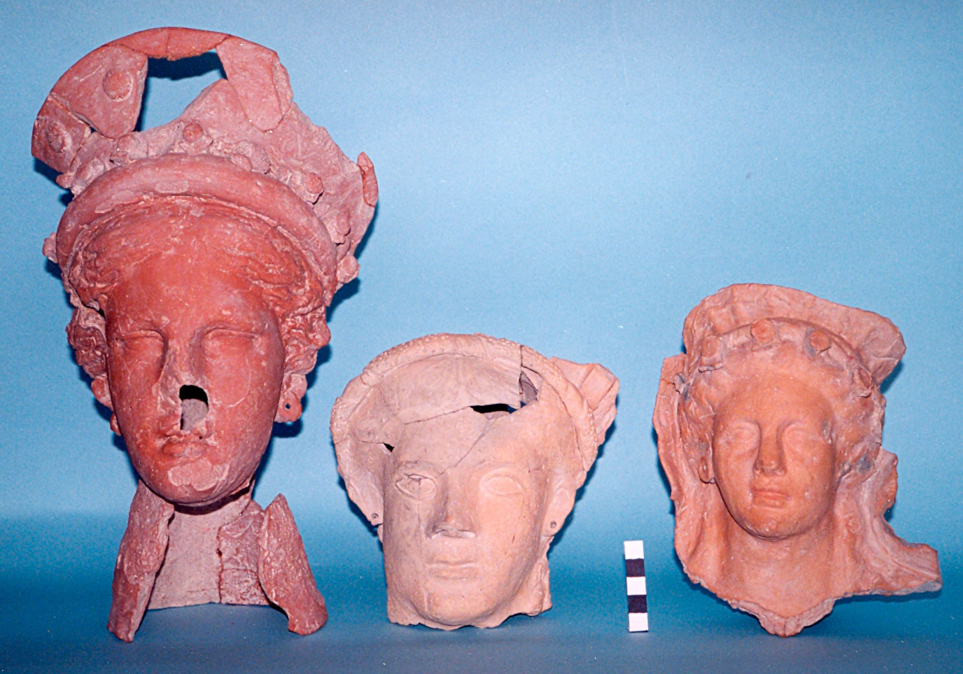 Ιδιαίτερο ενδιαφέρον παρουσιάζουν οι αποθετικοί λάκκοι, που ανοίχτηκαν μετά την καταστροφή του κτηρίου για να θαφτούν κάποια από τα ιερά αντικείμενα του χώρου. Έτσι διασώθηκε μια σειρά οκτώ πήλινων λατρευτικών ίσως ειδωλίων, εντυπωσιακών για το μέγεθος και την καλλιτεχνική τους εμφάνιση, που αποδίδουν κεφάλια ή προτομές γυναικείων μορφών, πιθανότατα κάποιες θεές ή νύμφες, σχεδόν σε φυσικό μέγεθος (εικ. 7). Τα ευρήματα αυτά, τα δεδομένα της κεραμικής και κάποια τυχαία ευρήματα από όμορα αγροτεμάχια, συνδέουν το κτίσμα με πιθανό χώρο ιερού, αφιερωμένου πιθανόν στη λατρεία του Δία Ύψιστου.