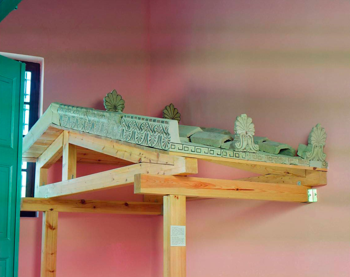 Στην αρχαία Αίγειρα, μία από τις ισχυρότερες αχαϊκές πόλεις, ανατολικά του Αιγίου και πολύ κοντά στην αρχαία Κορινθία, το Αυστριακό Αρχαιολογικό Ινστιτούτο έχει αποκαλύψει στην ακρόπολη δύο πρώιμα κτήρια. Το πρώτο, που χαρακτηρίζεται ως κτήριο Α, είναι ορθογώνιο, χρονολογείται από τον 10ο έως τον 8ο αι. π.Χ. και χαρακτηρίζεται από τους ανασκαφείς ως λατρευτικό κτήριο, πράγμα που αμφισβητεί ο Α. Μαζαράκης. Γύρω στο 650 π.Χ. το ναό αυτόν αντικατέστησε ο ναός Β, ορθογώνιο κτήριο χωρίς περίσταση το οποίο, κατά τους ανασκαφείς, ήταν αφιερωμένο στην Άρτεμη και την Ιφιγένεια και ακολουθεί τα οικοδομικά πρότυπα της Κορίνθου. Η ανασκαφή και η δημοσίευσή του, όμως, έγιναν πριν από τον εντοπισμό των υπόλοιπων πρώιμων ναών της ανατολικής Αχαΐας. Γύρω στο 500 π.Χ. η στέγη του αντικαταστάθηκε και η παλαιά ετάφη σε μία δεξαμενή. Η ανασύστασή της επετεύχθη στο Αρχαιολογικό Μουσείο Αιγίου (εικ. 7).
