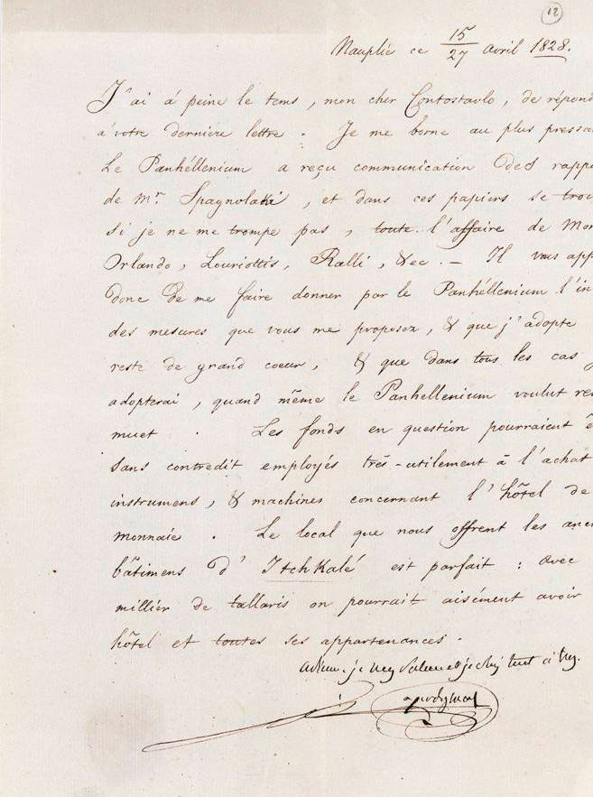 Tριάντα επτά επιστολές του Ιωάννη Καποδίστρια, στις οποίες μπορεί να αναζητηθεί κάποια επικαιρότητα, κυρίως με τα οικονομικά που από τότε ταλάνιζαν την Ελλάδα, θα δημοπρατηθούν από τον οίκο «Π. Βέργος» στις 24 Ιουνίου (ξενοδοχείο Athens Plaza, 7 μ.μ.).