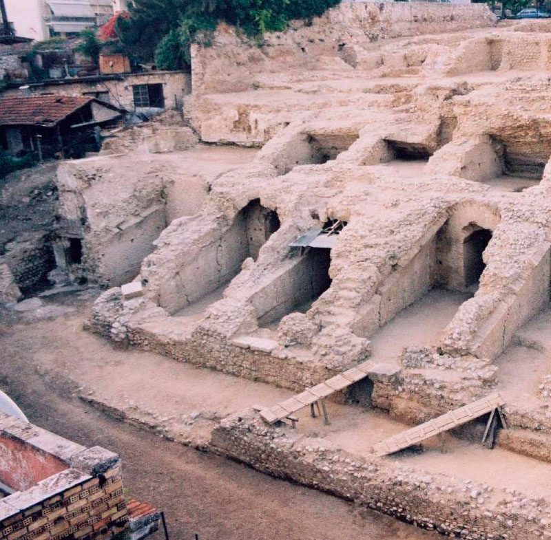 Βρίσκεται στο κέντρο της πόλης, διαγώνια από το ρωμαϊκό ωδείο και είναι ένα από τα σημαντικότερα ρωμαϊκά μνημεία της. Ωστόσο, κάθε άλλο παρά έχει αναδειχθεί. Μάλιστα, ένα μεγάλο μέρος του ρωμαϊκού αμφιθεάτρου-σταδίου δεν έχει καν ανασκαφεί. Οι απαλλοτριώσεις σχεδιάστηκαν με αποσπασματικό τρόπο και αυτό κάνει το έργο να καρκινοβατεί επί 30 και πλέον χρόνια. Το Κεντρικό Αρχαιολογικό συμβούλιο γνωμοδότησε ομόφωνα υπέρ της κατάρτισης ενός συνολικού σχεδίου, το οποίο προβλέπει σε πρώτη φάση την κατεδάφιση όλων των απαλλοτριωμένων κτιρίων και την ανασκαφή στα σημεία που θα απελευθερωθούν.