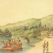 Ο Άγγλος ιατρός Henry Holland, το 1812, περιγράφει το ανατολικό άκρο της Κοιλάδας στην έξοδο της χαράδρας, όπου βρισκόταν από χρόνια η μεγάλη τουρκική γέφυρα: «Αφήνοντας το φαράγγι των Τεμπών και κατεβαίνοντας στην πεδιάδα, περάσαμε στη βόρεια όχθη του ποταμού με ένα πορθμείο με άλογα, ένα υποκατάστατο της γέφυρας η οποία βρίσκεται μισό μίλι πιο κάτω, και που γκρεμίσθηκε πριν από δύο χρόνια από μια χειμωνιάτικη πλημμύρα» (σημ. 12). Στο οδοιπορικό του Holland λοιπόν έχουμε και μια άμεση μαρτυρία για την καταστροφή του πετρογέφυρου του Πηνειού, μήκους περίπου τριακοσίων μέτρων, στην περιοχή του Ομολίου το 1810 (εικ. 5).