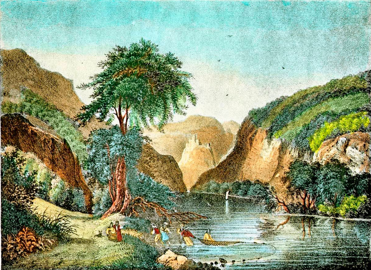 Το 1819 ο Γάλλος ζωγράφος Louis Dupré πέρασε από τα Τέμπη. Στην περιγραφή του είναι λιτός: «Περάσαμε πρώτα από ένα δάσος πλατάνων και σύντομα υποχρεωθήκαμε να περπατήσουμε ανάμεσα από άγρια τεράστια βράχια, με επιβλητική αλλά και τρομακτική μορφή, που υψώνονταν στις όχθες του Πηνειού» (σημ. 15) (εικ. 6).