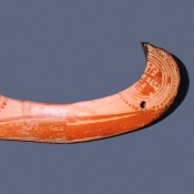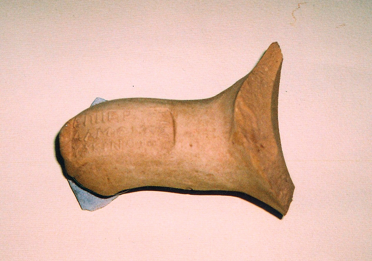 3. Πήλινο λοξότμητο προχοΐδιο (σημ. 28) (Αρ. Ευρ. 695 – Προθήκη 8) από τη σωστική ανασκαφή στο ΞΕΝΙΑ Σκύρου, το 1986. Ο δημιουργός του αποτύπωσε στο σώμα του αγγείου δύο καραβάκια.