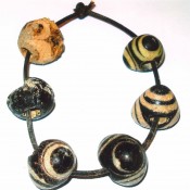 Τέλος μνημονεύουμε την ανεύρεση έξι (σημ. 29) φοινικικής προέλευσης ψήφων (χάνδρες), από τάφο στη θέση Μαγαζιά (Αρ. Ευρ. 941), η παρουσία των οποίων δηλώνει εμπορικές σχέσεις με άλλες περιοχές (εικ. 6). Οι ψήφοι αυτές δεν είναι το μόνο εισηγμένο αγαθό που προέκυψε από τις ανασκαφές στην Πελαγία Σκύρο.