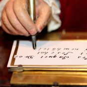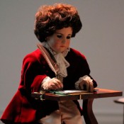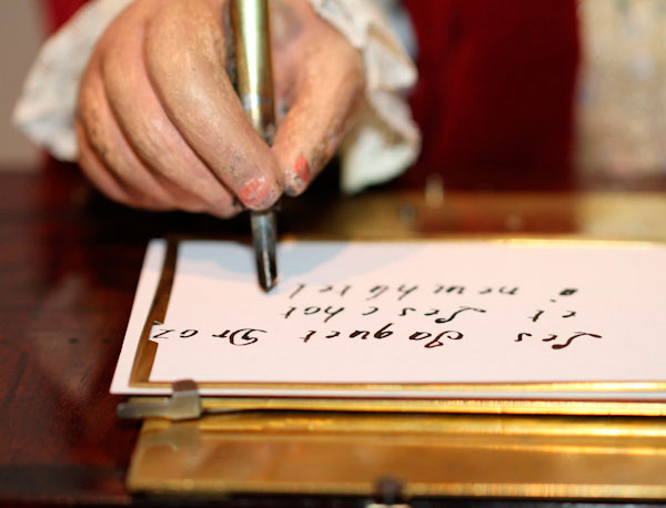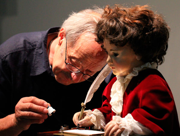 H μηχανική κούκλα των 6.000 εξαρτημάτων, καθισμένη μόνιμα στο γραφείο της, βουτάει την πένα στο μελάνι και γράφει τις φράσεις που προγραμμάτισε πριν από 200 και πλέον χρόνια ο δημιουργός της.