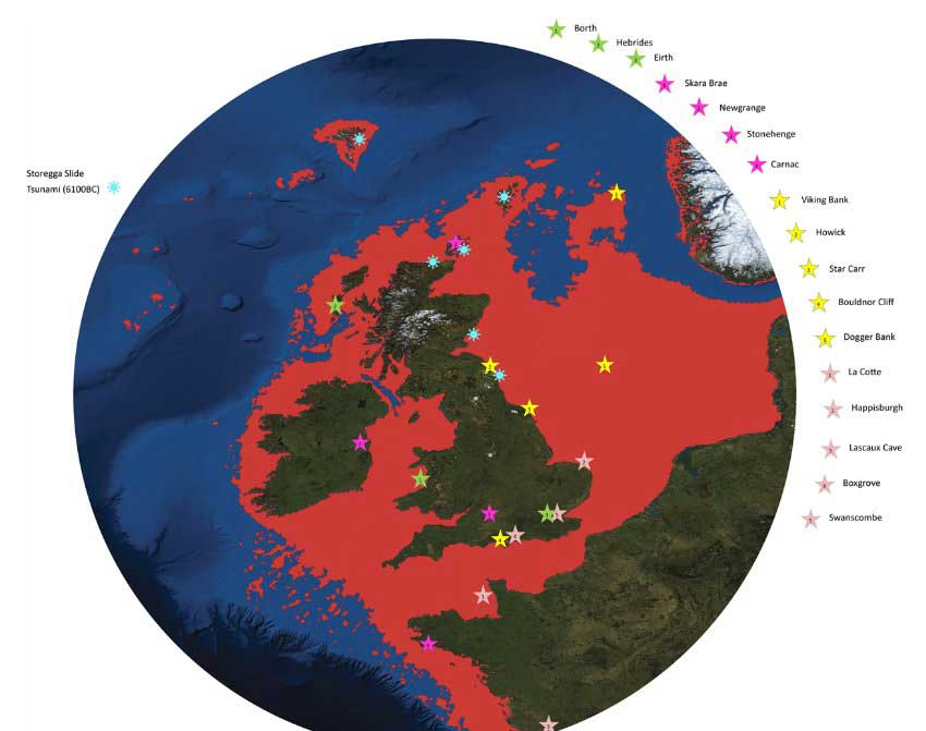 Τώρα οι γεωλόγοι αναπαράστησαν την πατρίδα των αποίκων του μακρινού παρελθόντος. Κατά τη θερινή συνάντηση της βρετανικής Royal Society στο Λονδίνο παρουσίασαν την περασμένη εβδομάδα έναν άτλαντα της Doggerland, του χαμένου παραδείσου ανάμεσα στη Μεγάλη Βρετανία και την ηπειρωτική Ευρώπη, που βυθίστηκε πριν από 7.500 χρόνια.