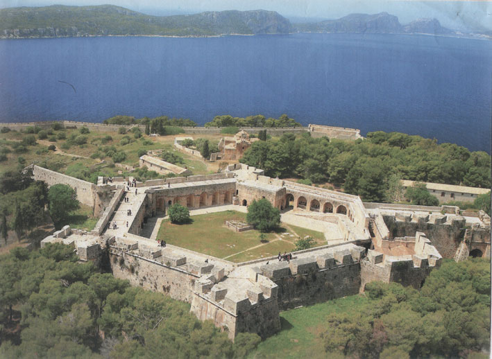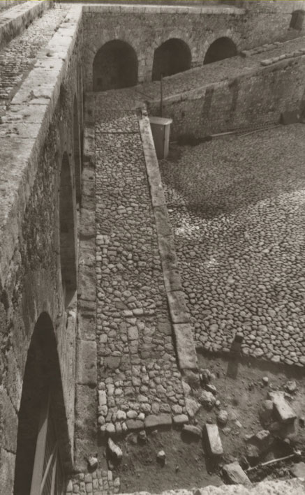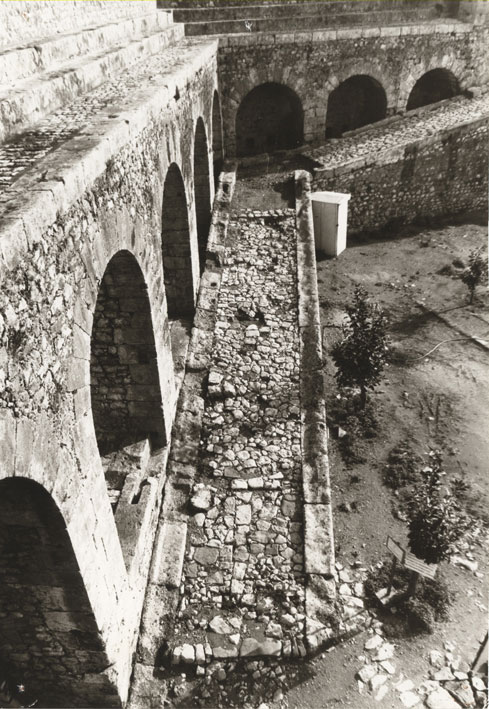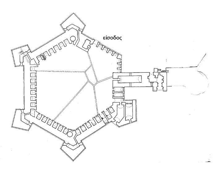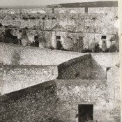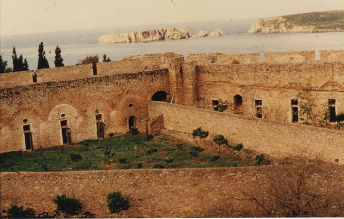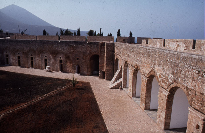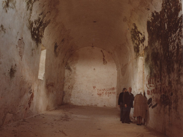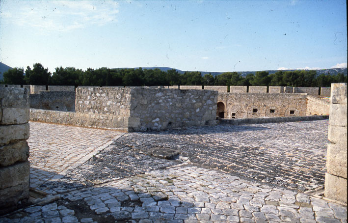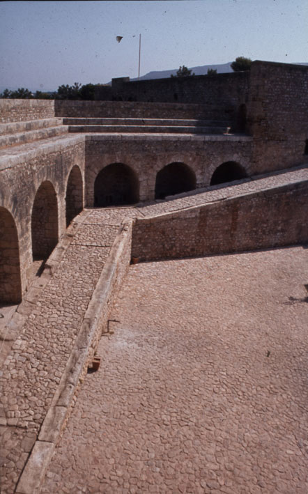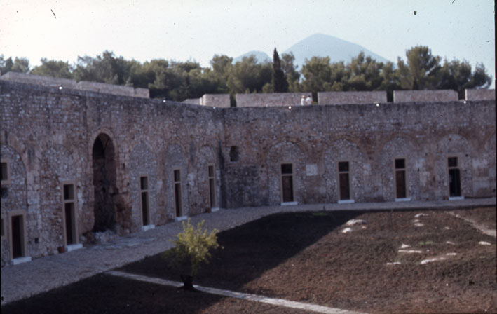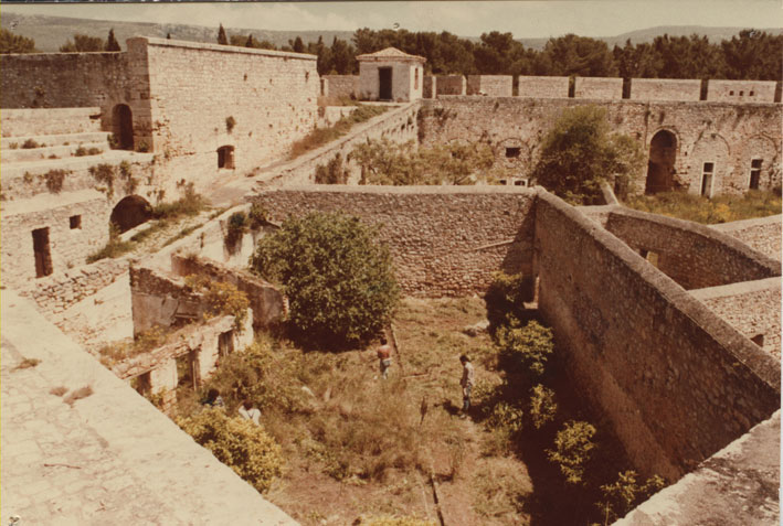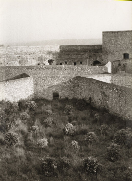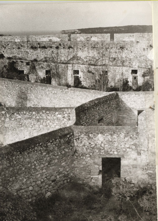 Όταν άρχισαν τα έργα, η εικόνα της ακρόπολης ήταν αυτή των φυλακών (σημ. 2), δηλαδή με τις καμάρες επάνω στις οποίες στηρίζονταν τα περιπόλια φραγμένες, αφού είχαν μετατραπεί σε κελιά, ενώ ο εξαγωνικός αύλειος χώρος είχε διαχωριστεί ακτινωτά με πανύψηλες μάντρες σε πέντε τμήματα-ακτίνες, όπου αυλίζονταν οι κρατούμενοι (εικ. 6).
